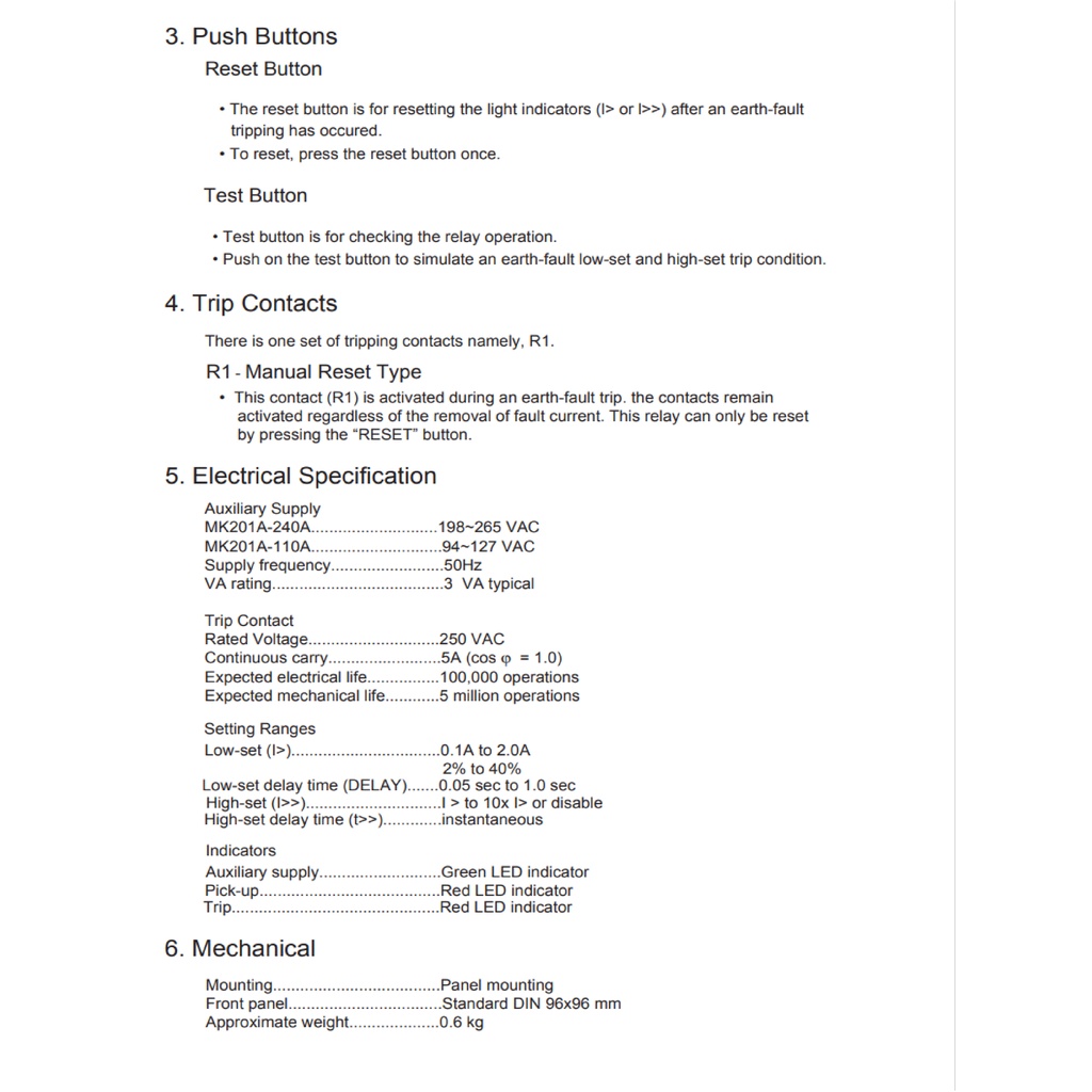 Mikro MK201A-240A Definite Time Earth Fault Relay