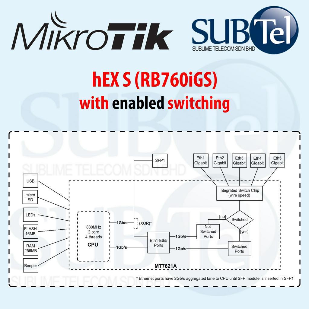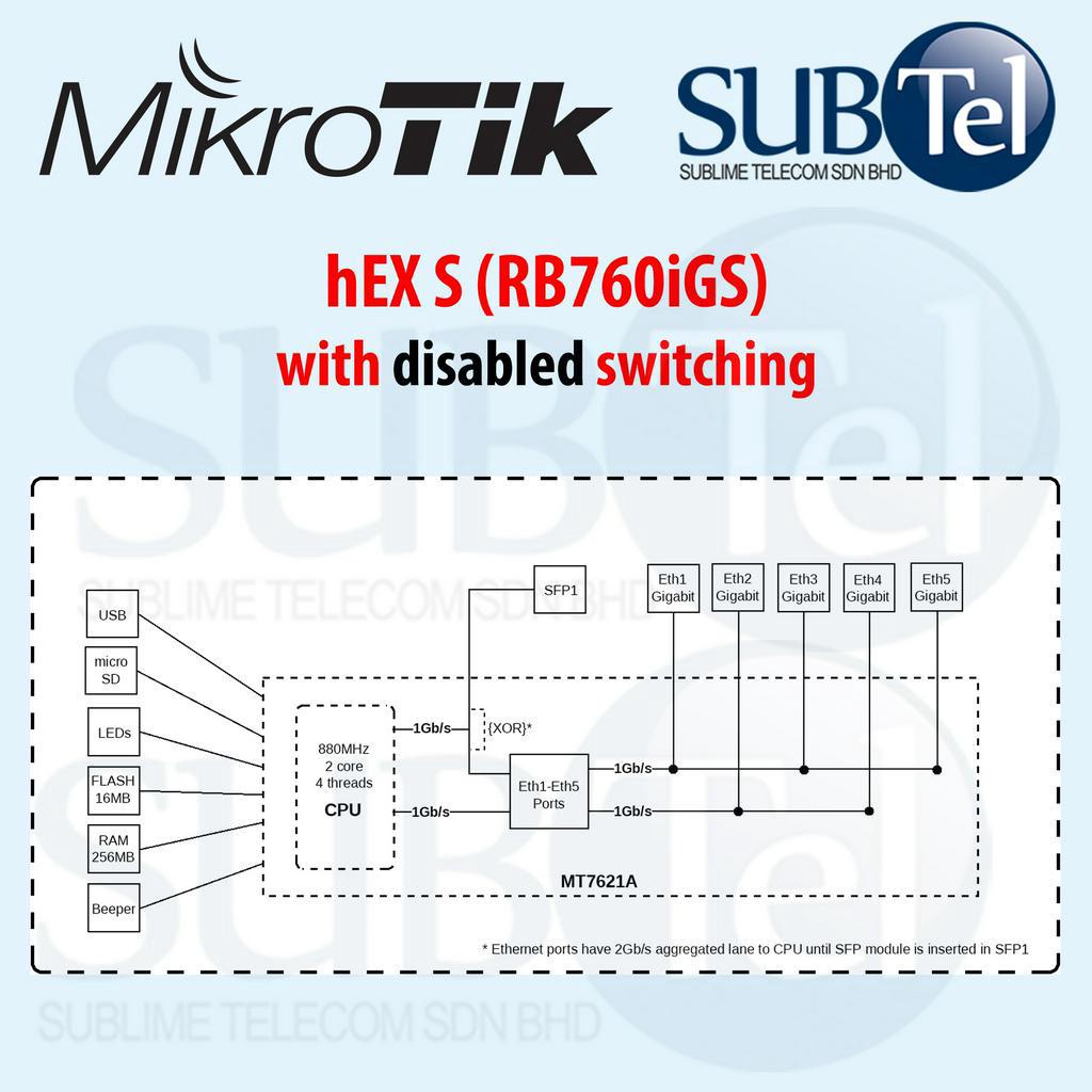 Mikrotik hEX S (RB760iGS) Gigabit Router 5 port with SFP and 802.3af POE VPN IPSec encryption