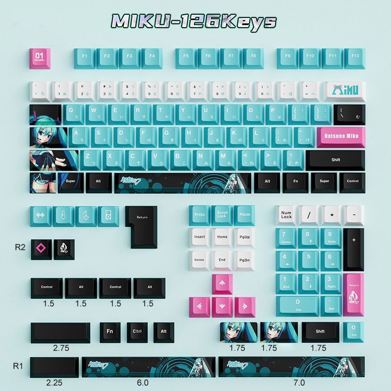 Miku Keycaps PBT Dye-sub Cherry Profile Keycap Custom Keycaps Compatible with Cherry Gateron MX Switches
