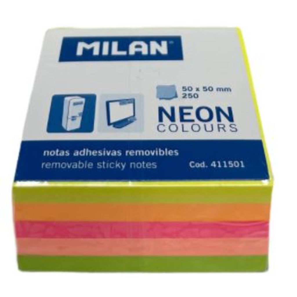Milan 50mm x 50mm 250sht Sticky Notes Square Neon Colours 5col 411501