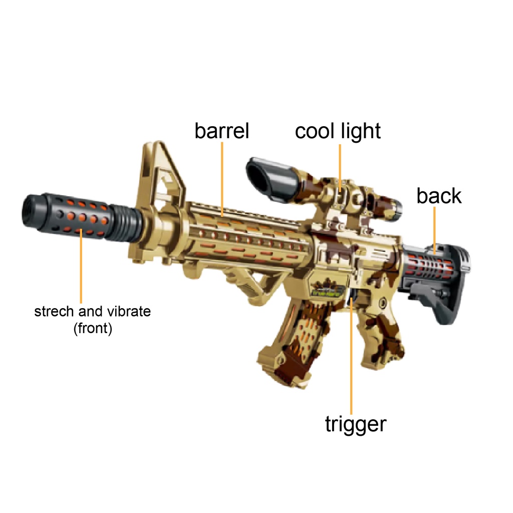 Military Combat Rifle Machine Gun Toy Special Forces LED Light & Sound Effects Vibrating / Pistol Mainan Berlampu