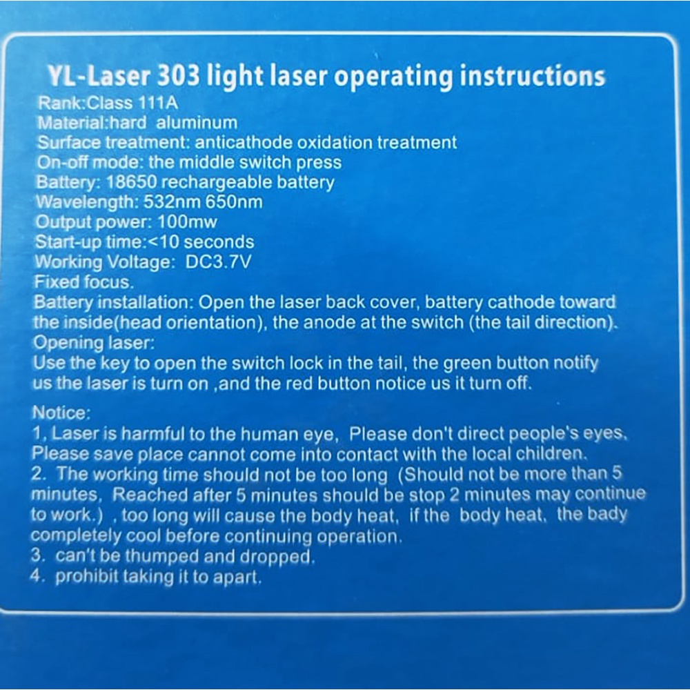 Military Laser Burning Laser Green Laser Red Laser Pointer Pen Beam Laser 303 - Laser with Key - Pen Laser