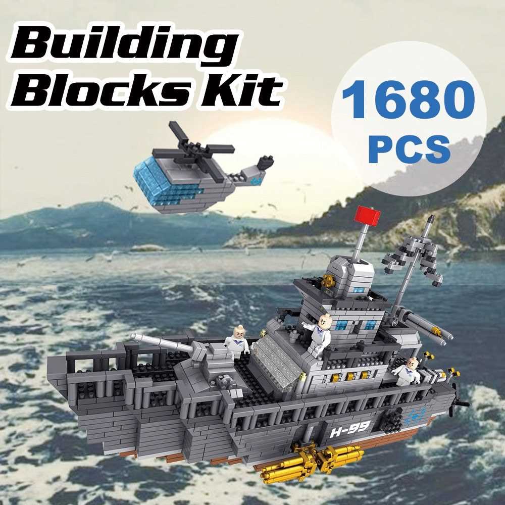 Military Model Aircraft Carrier Atomic Building Blocks Kit 1680pcs(Silver)