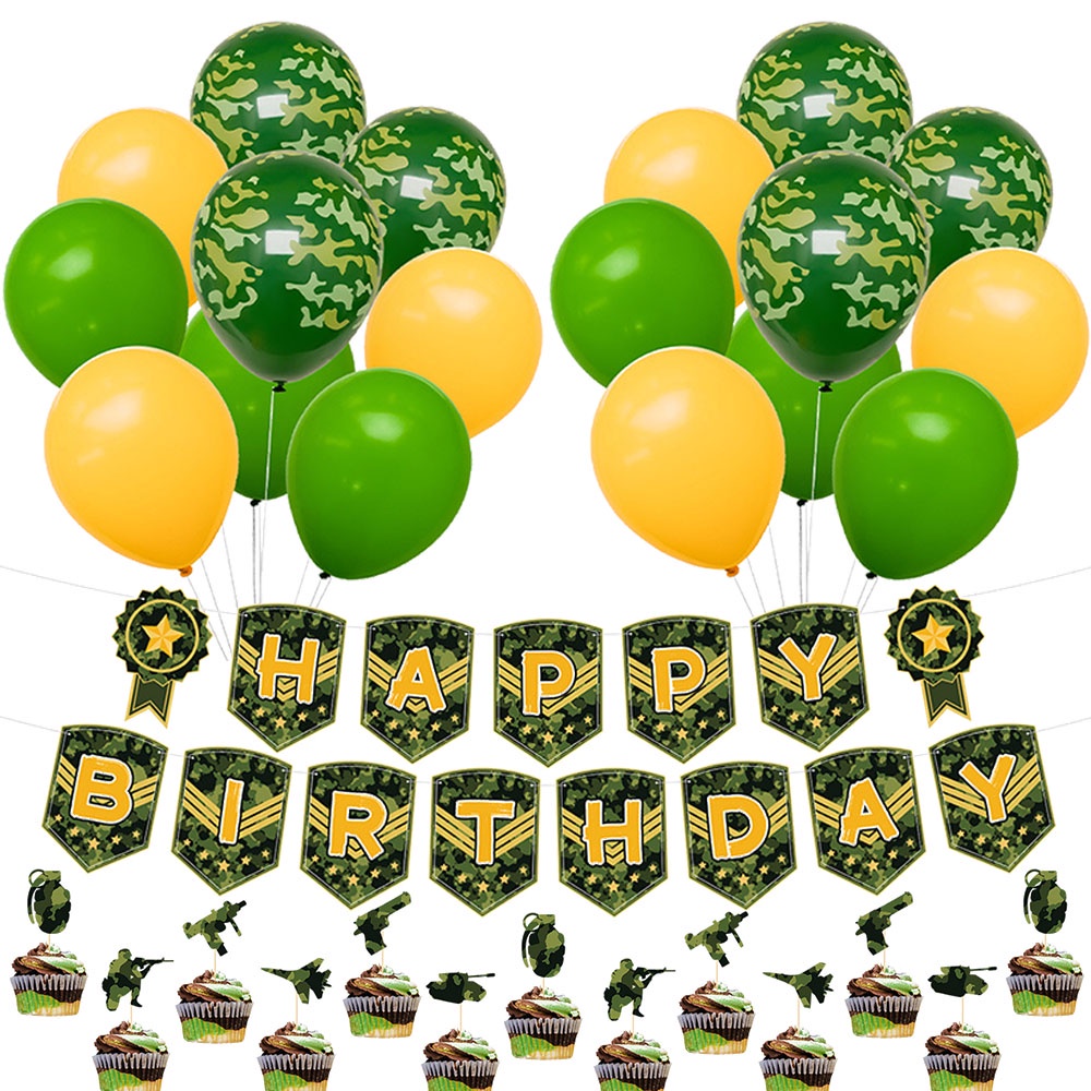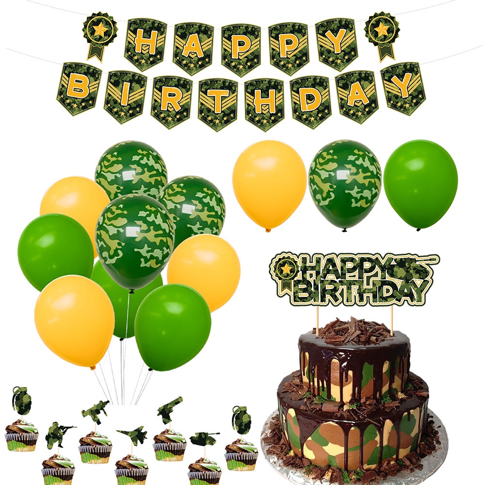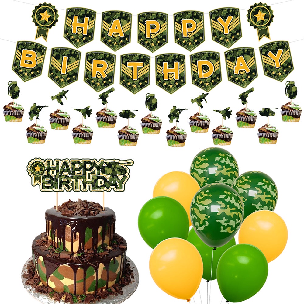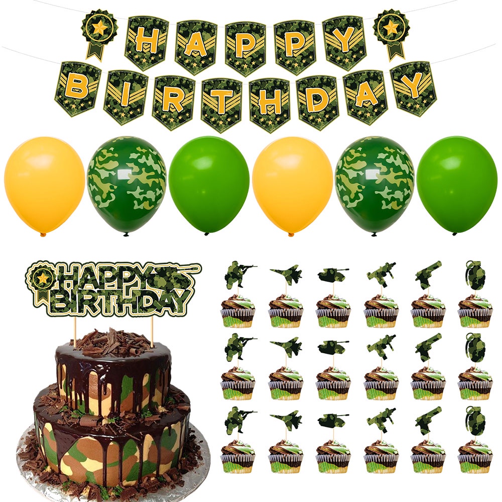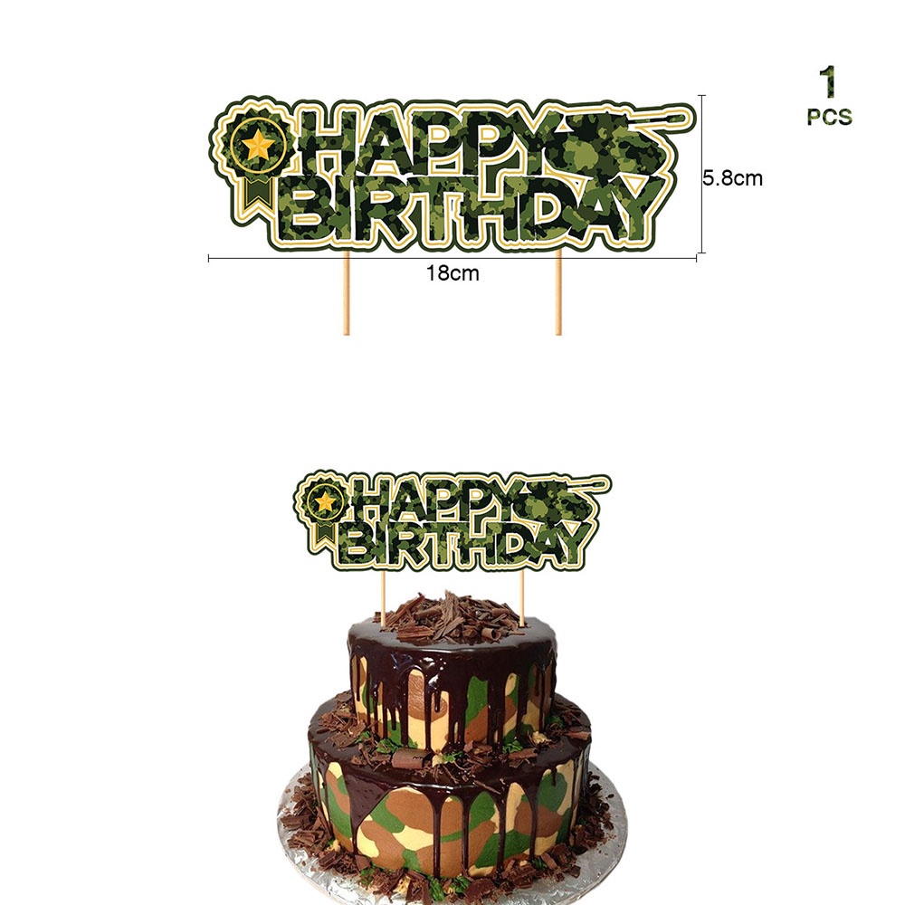 Military Themed Party Camouflage Green Army Tank Birthday Party Decoration Cake Topper Happy Birthday Banner Kids Party Gift
