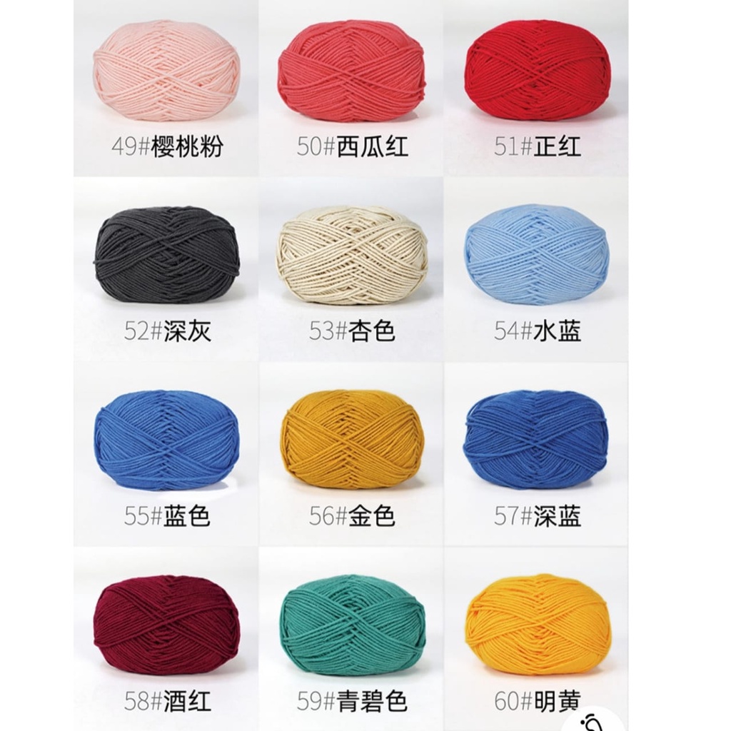 Milk Cotton 4 Ply Colour Benang Kait 4 Ply Knitting Yarn Milk Cotton Crockhet Yarn Good Quality Sweet Colour