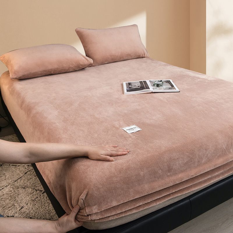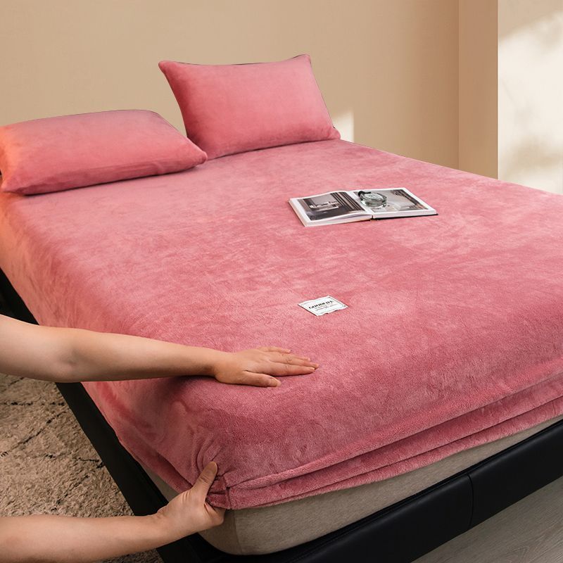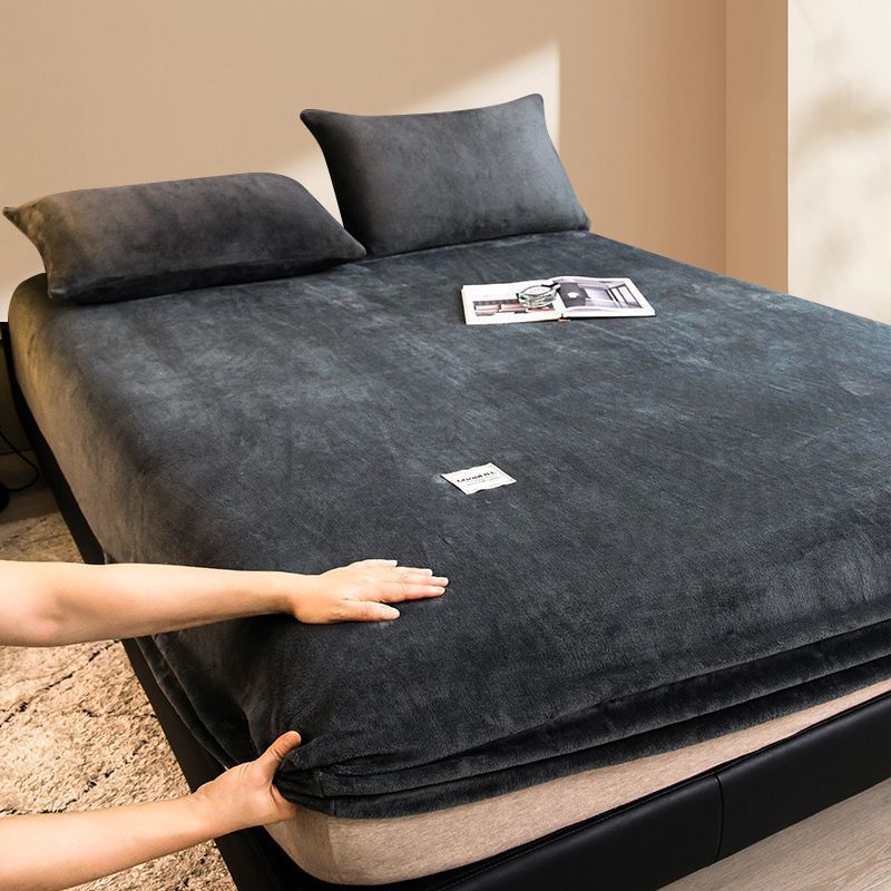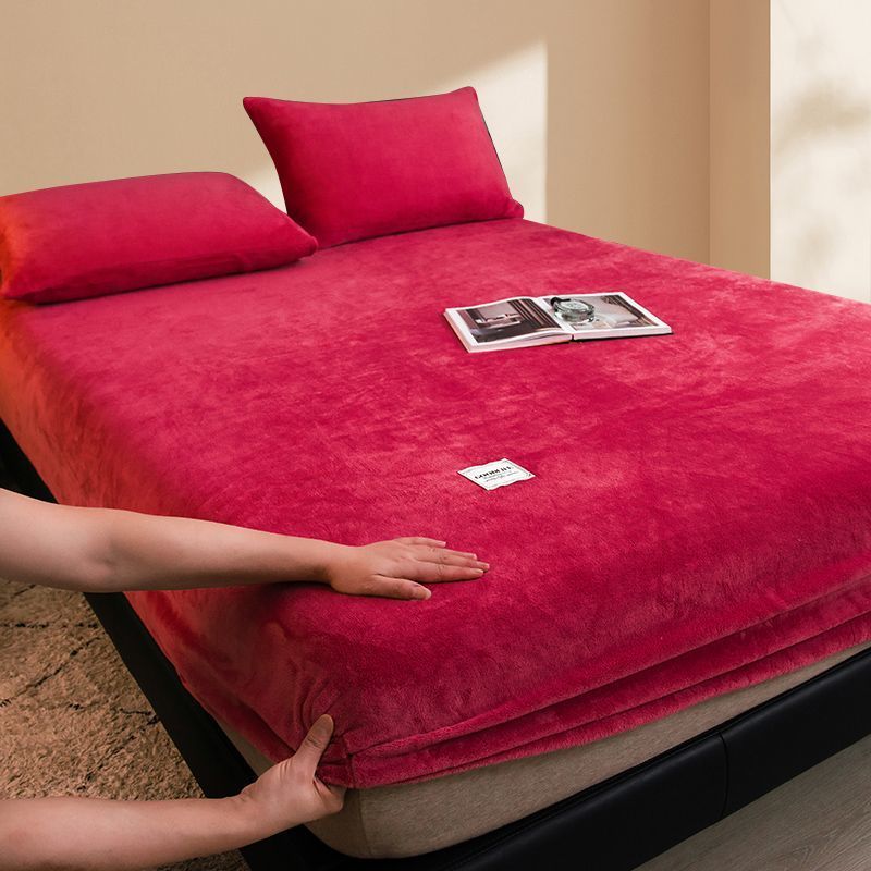【MY Ready Stock】Milk Fleece Bed Sheet Single-Piece All-Inclusive Fixed Anti-Slip Bedspread Coral Fleece
