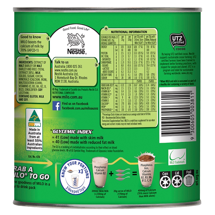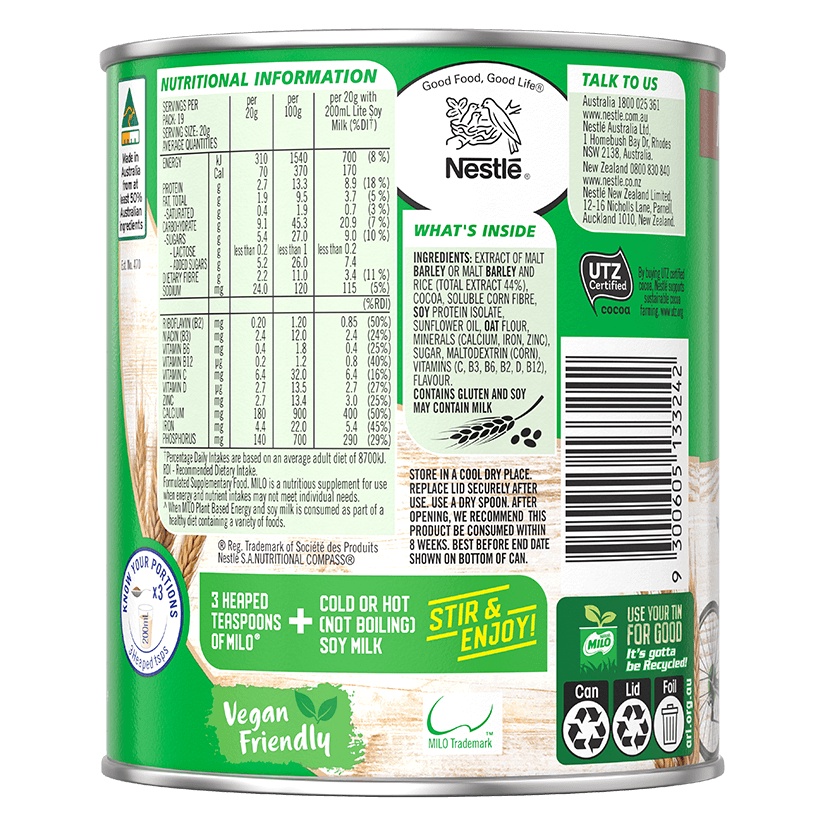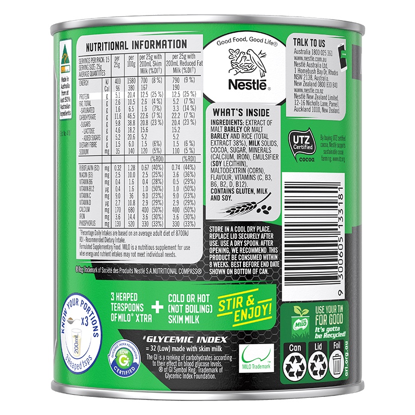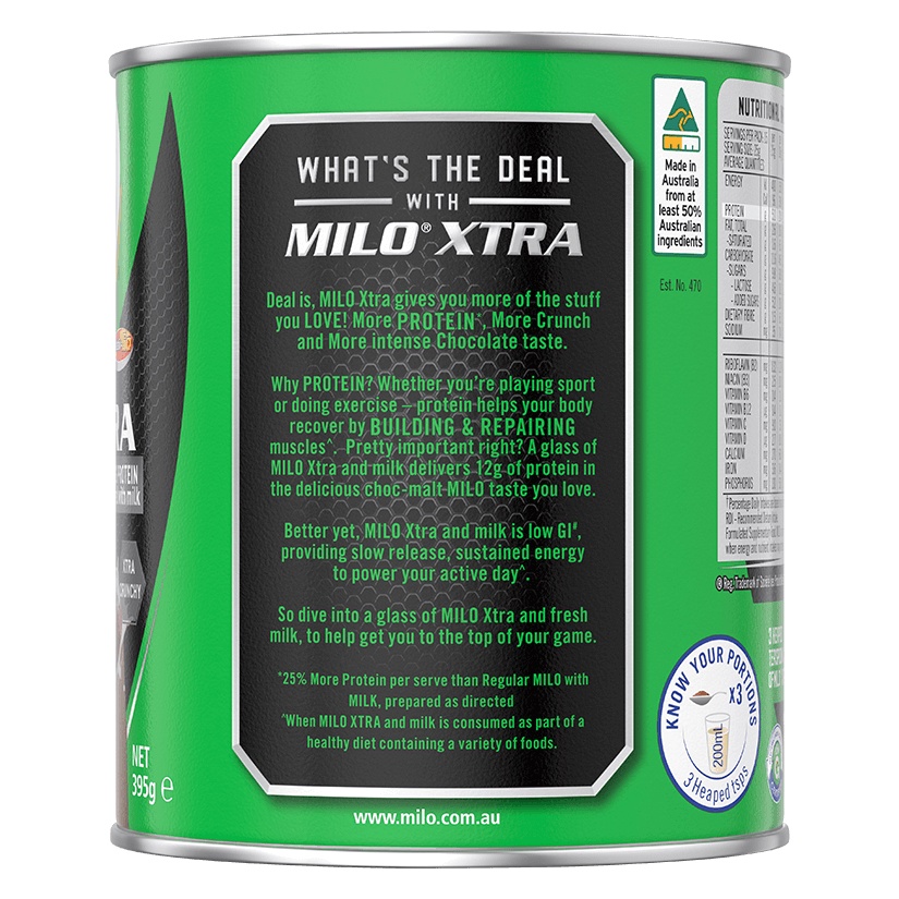 Milo Australia original 460g / Plant based / Xtra Malt / 30% less sugar 395g