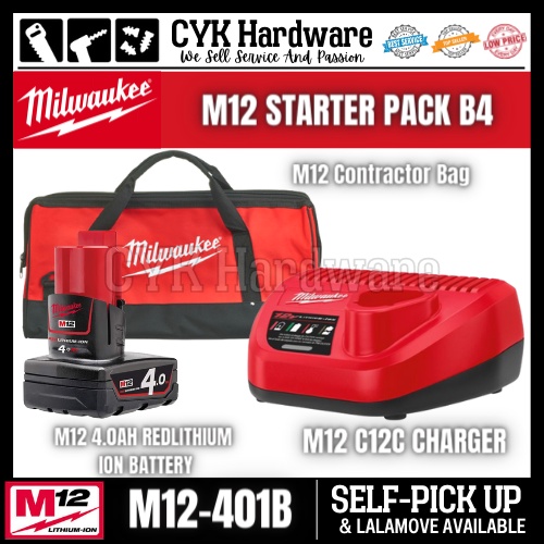 Milwaukee M12 RED LITHIUM-ION BATTERY / CHARGER / CONTRACTOR BAG