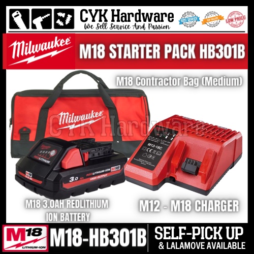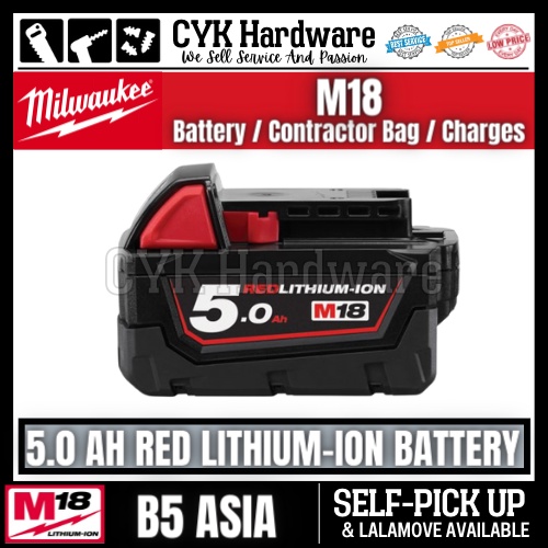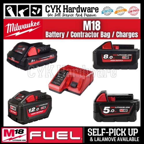 Milwaukee M18 RED LITHIUM-ION BATTERY / CHARGER / CONTRACTOR BAG