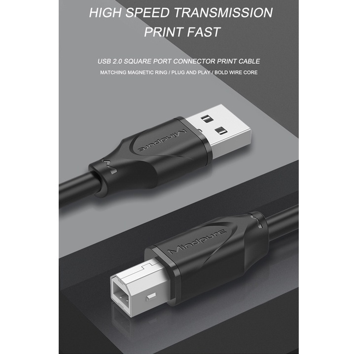 Mindpure US002 USB 2.0 Printer Cable Type A Male to Type B Male 1.5M for Canon/ Epson/ HP /Brother Printer USB Cable