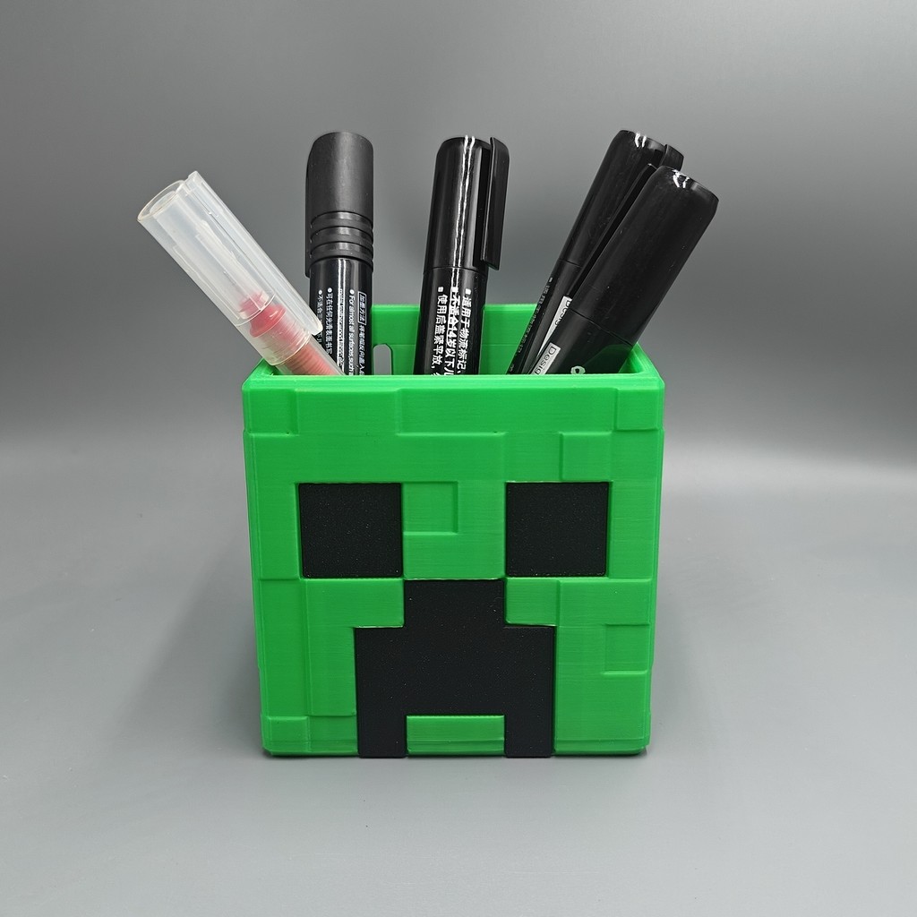 Minecraft Creeper TNT Pen Organizer & Pencil Holder - Unbreakable Square Storage Box - Student Study Desk Organizer - Gift for Kids Boys Girls - Creeper Face Design