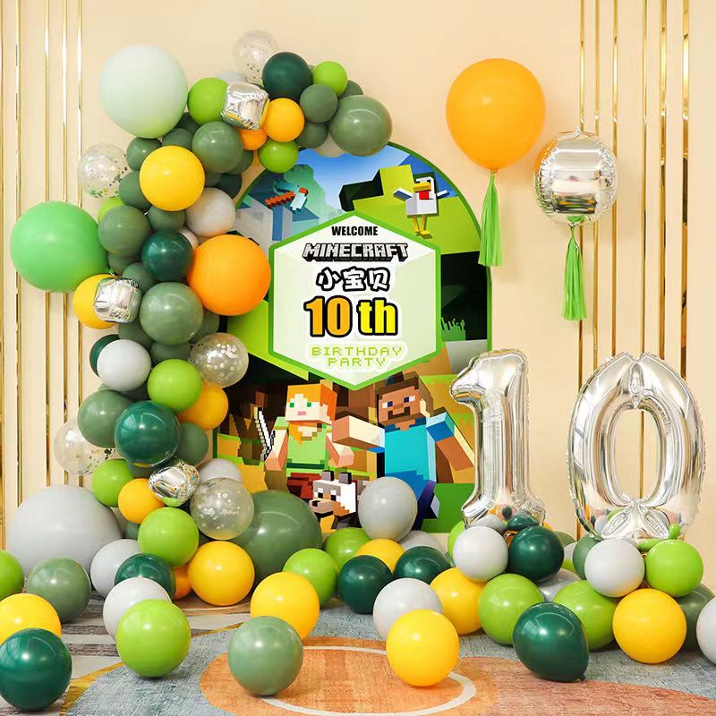 Minecraft Theme party decoration happy birthday Party Supplies Pixel Style Gamer Party Decorations Banner Steve Balloons