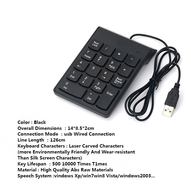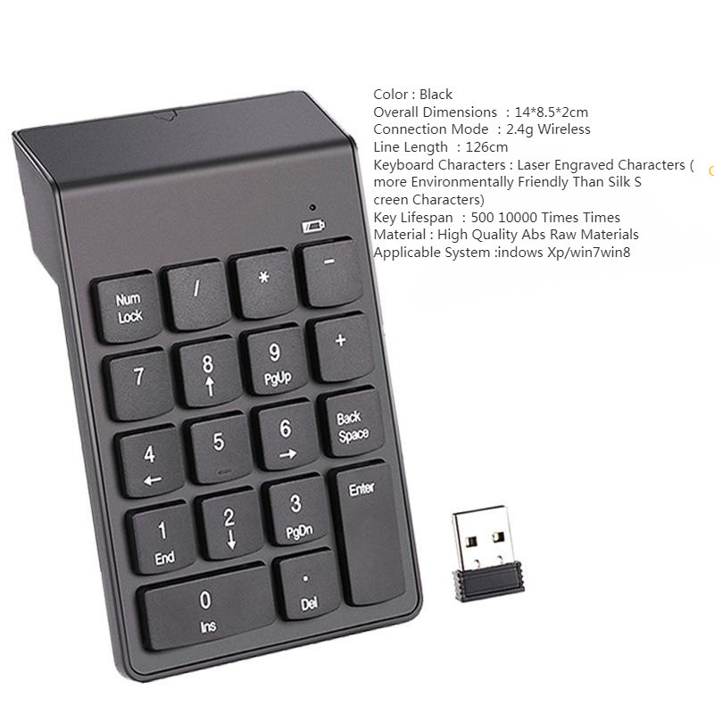 Mini 2.4G Wireless USB Wired Numeric Keypad Numpad Keyboard 19 Keys Digital Number Pad for Windows XP/7/8 Laptop PC Office