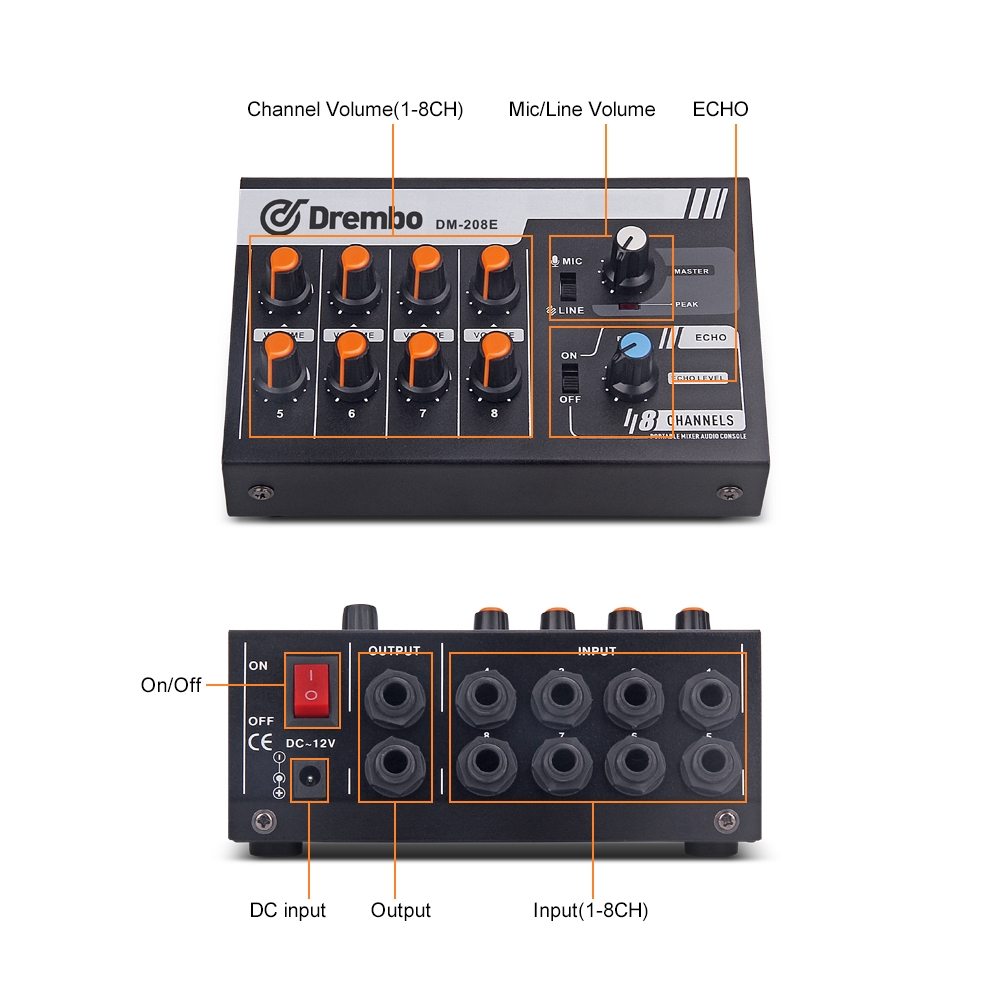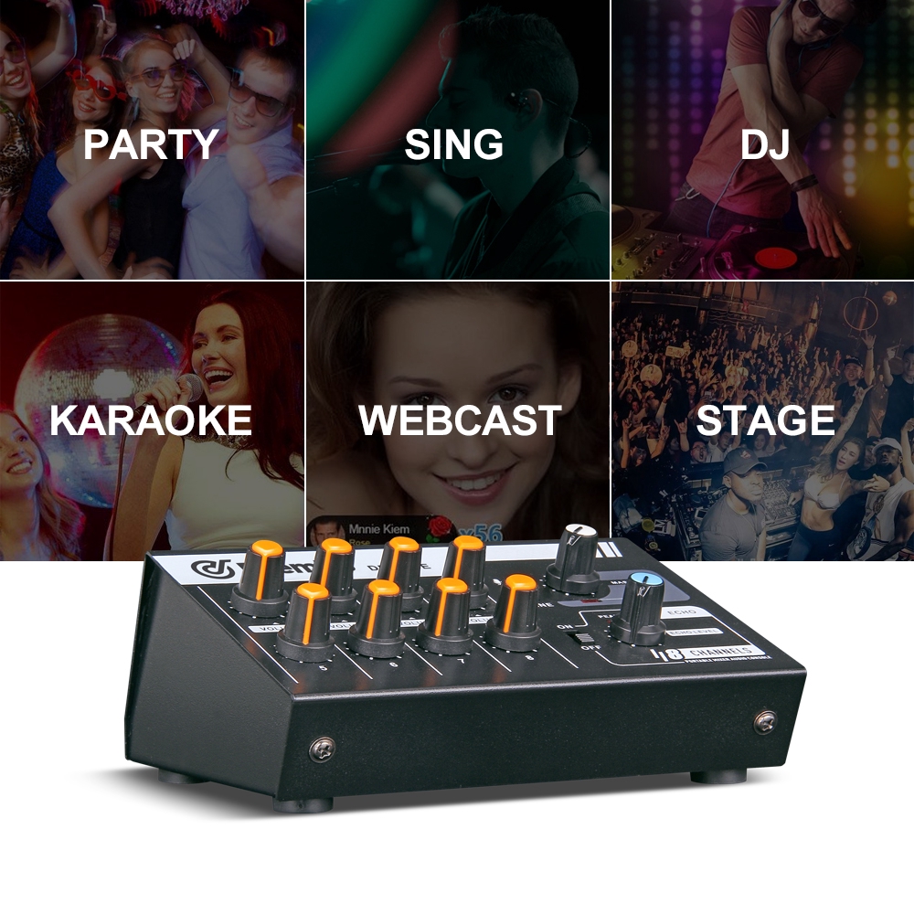 Mini Audio Mixer Portable Switchable Stereo 4 & Mono 8 Channels Microphone Audio Mixer Console for DJ Karaoke