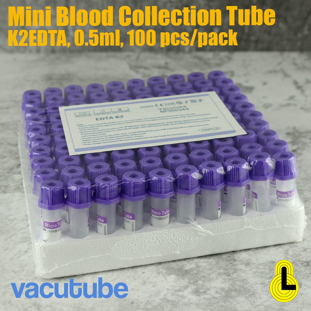 Mini Blood Collection Tube K2EDTA 0.5ml 100 tubes/rack, Vacutube
