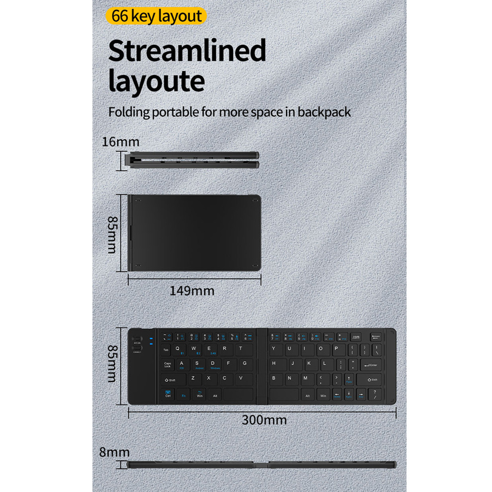 Mini Bluetooth Keyboard +2.4G Wireless Foldable Keyboard, Rechargeable Bluetooth Keyboard Portable USB Pocket Size Keyboard Folding