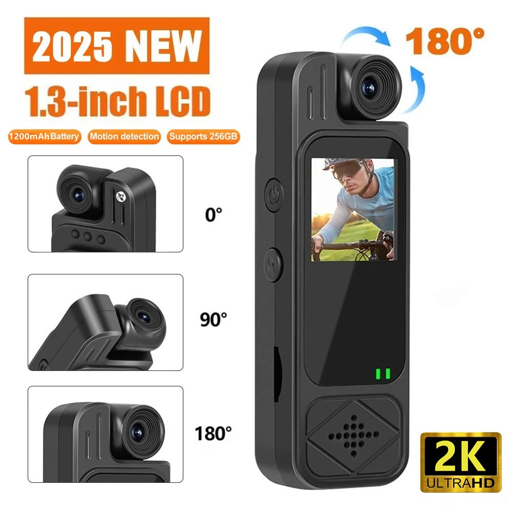 Mini Body Camera 1080P 2K HD Sports CameraRotatable Night Vision Digital Video Recorder 1.3inch Bodycam Police Camera