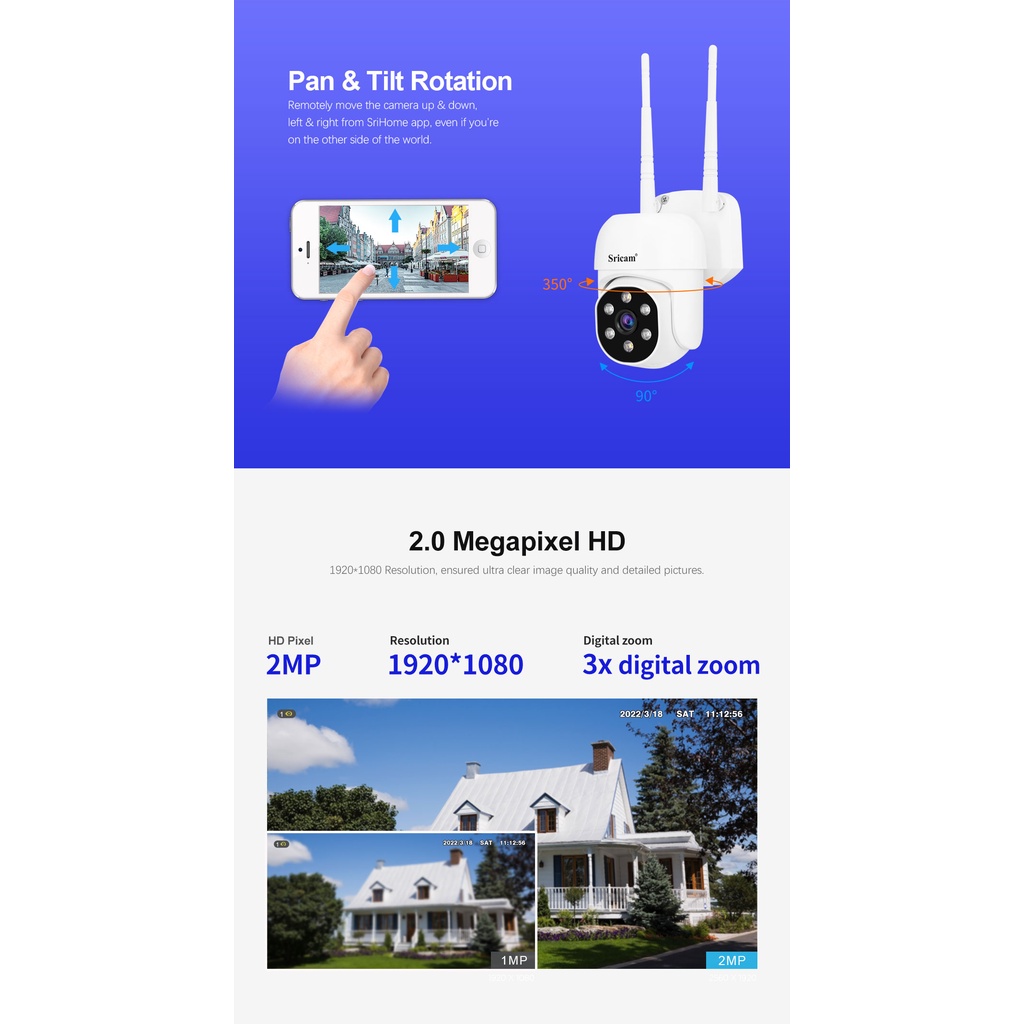 Mini Compact Wifi CCTV Camera SriHome SP030 1080P FHD Video Recorder PTZ IP Security Surveillance Cam Two-Way Audio