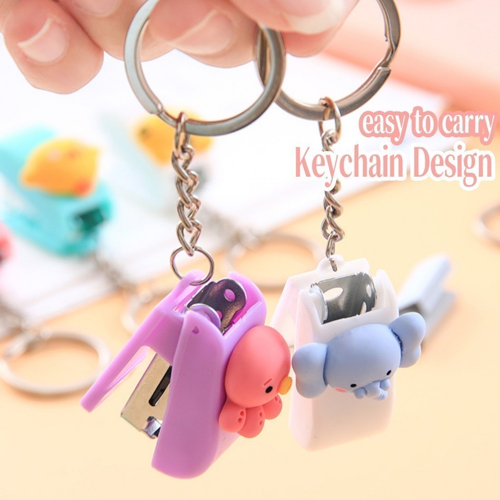 Mini Cute Keychain Stapler Portable Cartoon Book Paper Binder Machines Stationery Office Supplies School Student Gift