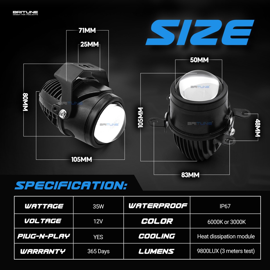 Mini Driving Light Bi LED Fog Light Projector 2 inch Fog Lamp Spotlight Motorcycle MDL Headlight 3000K 6000K Auxiliary Light Waterproof Work Light Car Accessories
