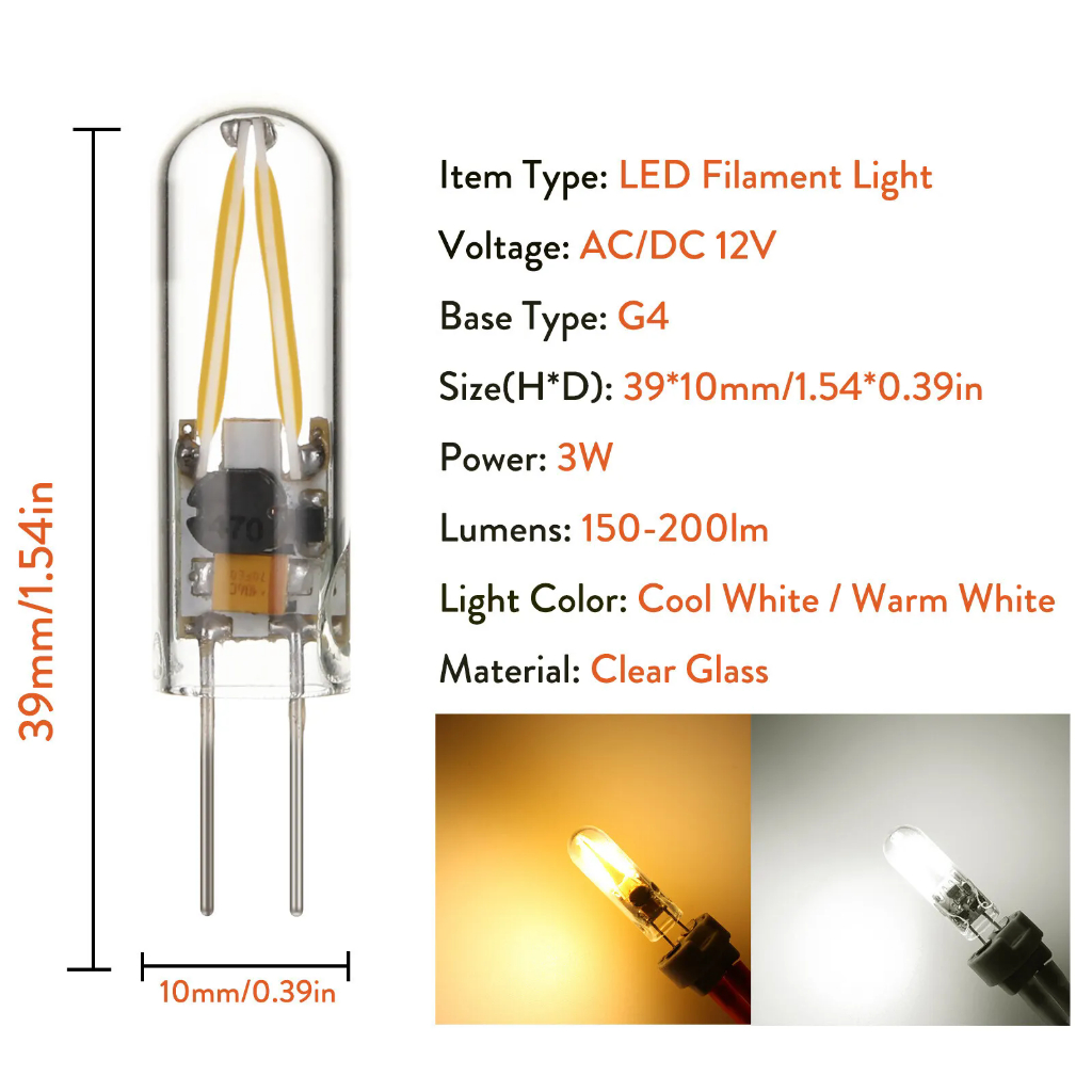 Mini G4 Led Light Bulbs DC 12V Replace Cob Filament Bombillas Glass 5W Cool White 6000K Warm 3000K Spotlight Lamparas Home Lighting Chandelier Halogen Lamps For 360 Beam Lampada