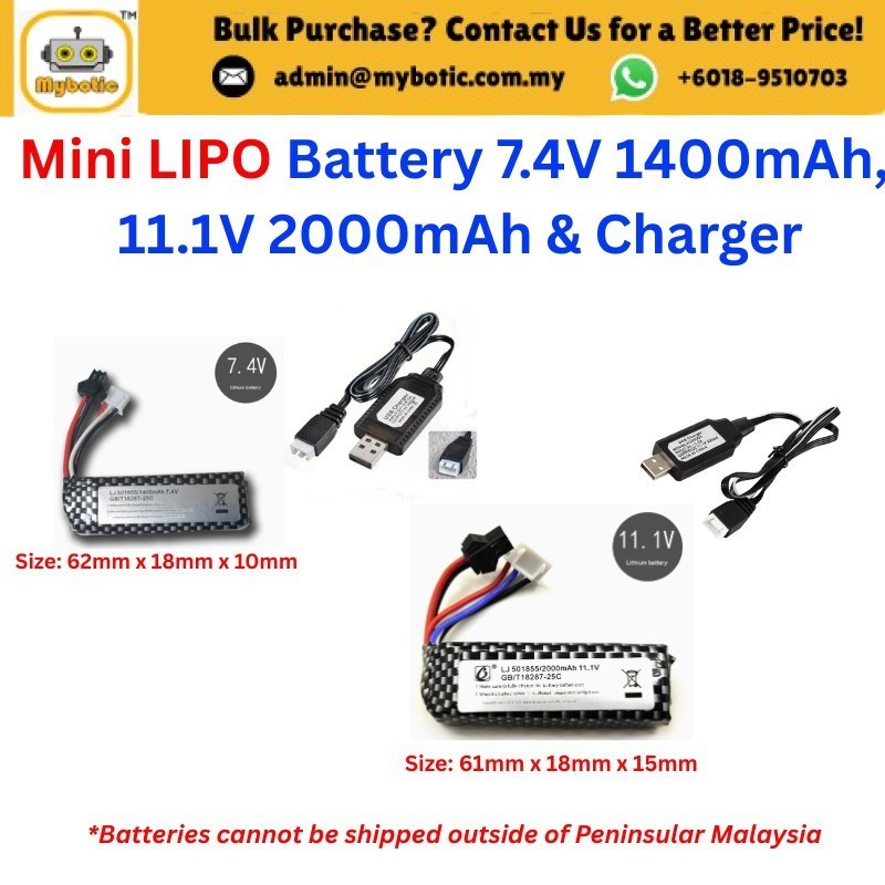 Mini LIPO SUMO Robot Battle Robot Rechargable Battery 7.4V 1400mah 25C, 11.1V 2000mah 25C And Charger