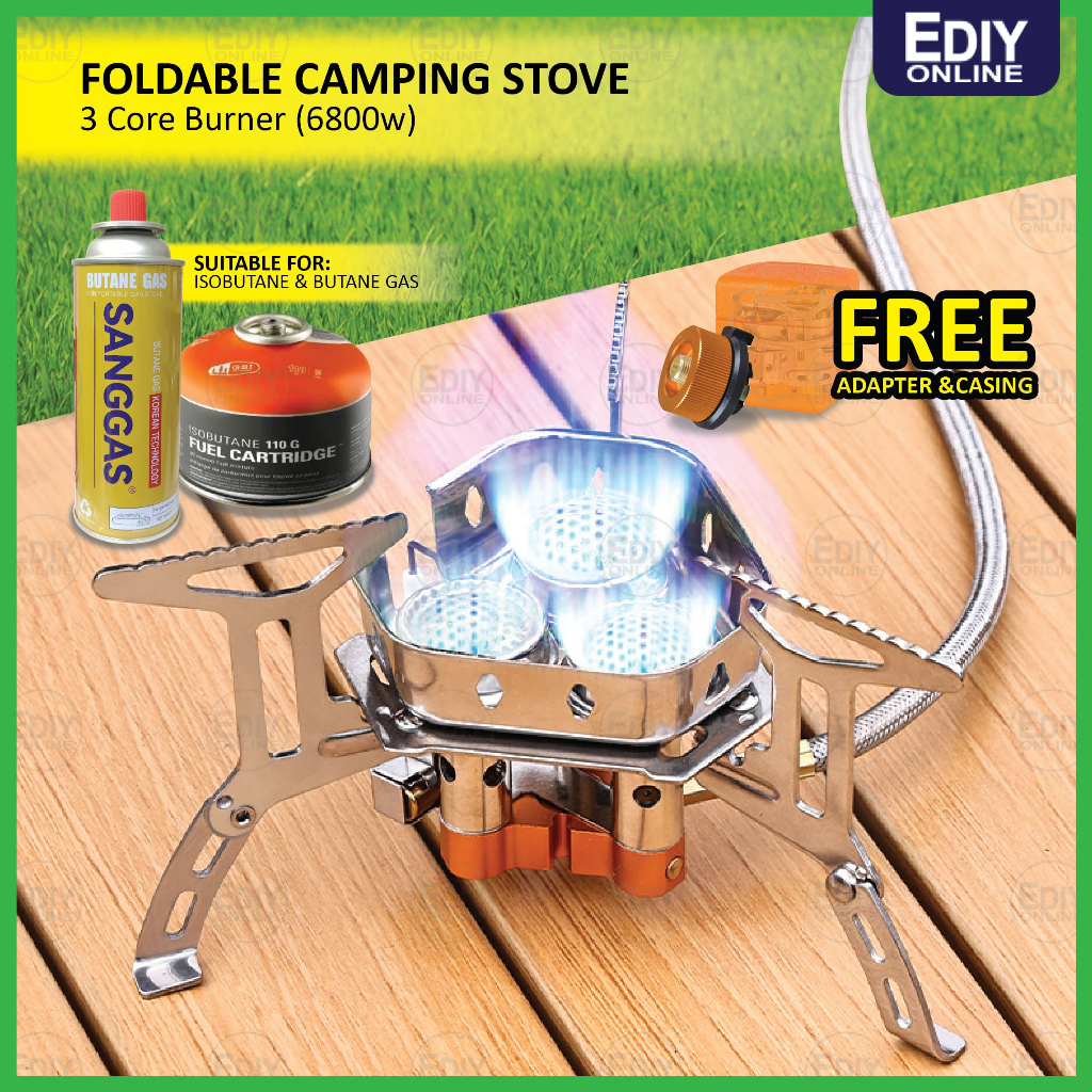 Mini Portable Camping Card Type Lotus Stove Anti Wind Butane Gas Cooker Dapur Khemah Masak Windproof Foldable Picnic