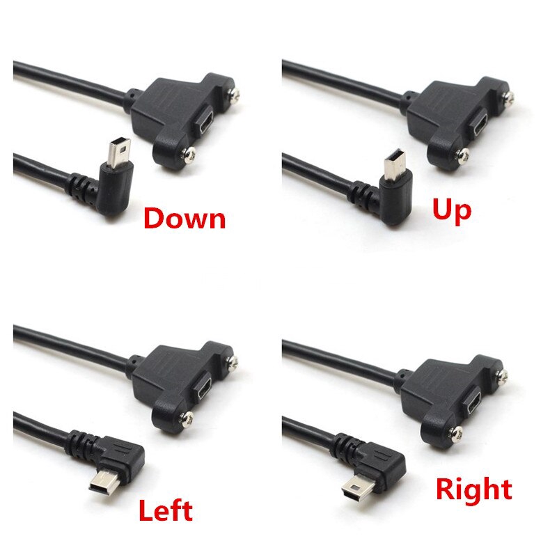 Mini USB Up Down Left Right Angled Elbow mini USB B 5pin 2.0 Male to Female Extension Cable 30cm 50cm With Panel Mount Hole
