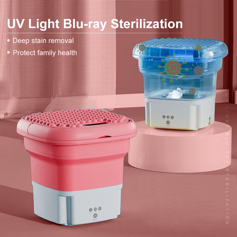 Mini Washing Machine Portable Foldable Travel Laundry Washer Mesin Basuh Lipat Lampu UV Cuci Baju Baby Kain Lap Sock Bayi Hostel Socks Bra Baby Clothes