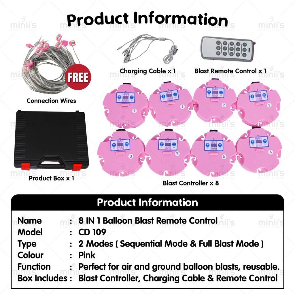 Miniis 8IN1 Balloon Exploder Firing System Blast Controller Wireless Remote Balloon Wedding Party