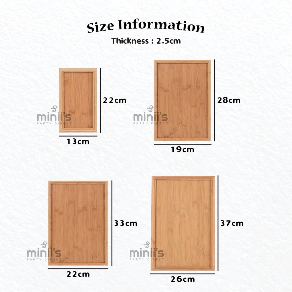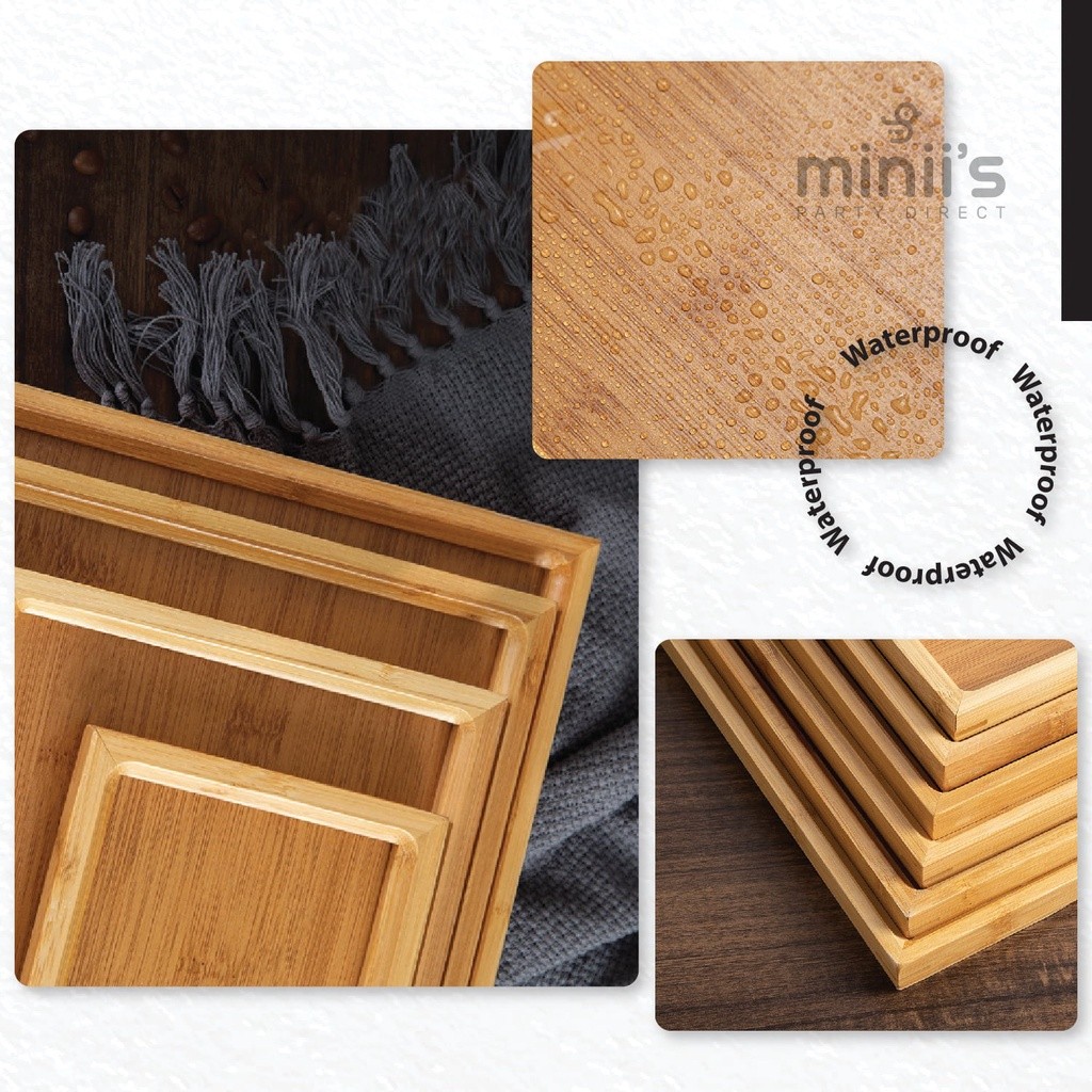 Miniis Bamboo Plate Bamboo Tray Rectangle Serving Tea Tray Food Tray Breakfast in Bed, Lunch Party Birthday Dulang Kayu