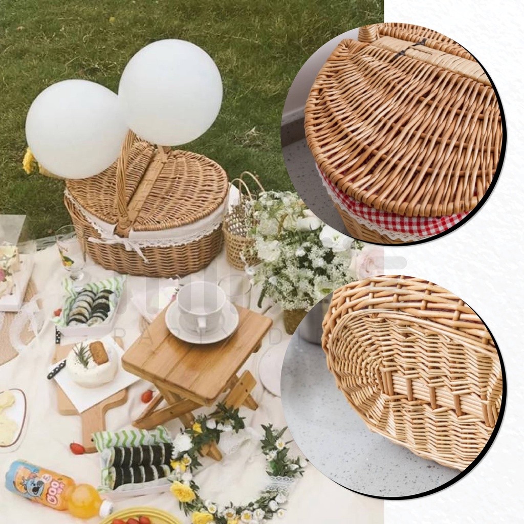 Miniis Handmade Natural Picnic Basket Wicker Camping Basket Shopping Storage Picnic Decor 野餐篮