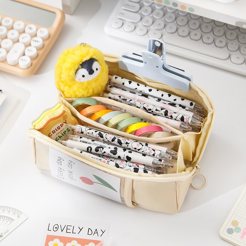 Minimalist 3D Stereoscopic Large Capacity Pencil Box Foldable Multilayer Stationery Storage Bag Student Multifunctional Pencil Bag