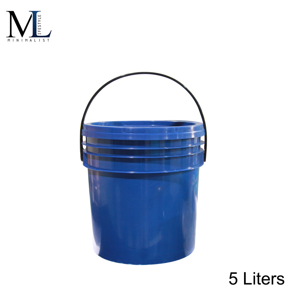 Minimalist Lifestyle:- 5 Liters Plastic Round White/Blue UNICA Double Lock Pail With Lid and Handle
