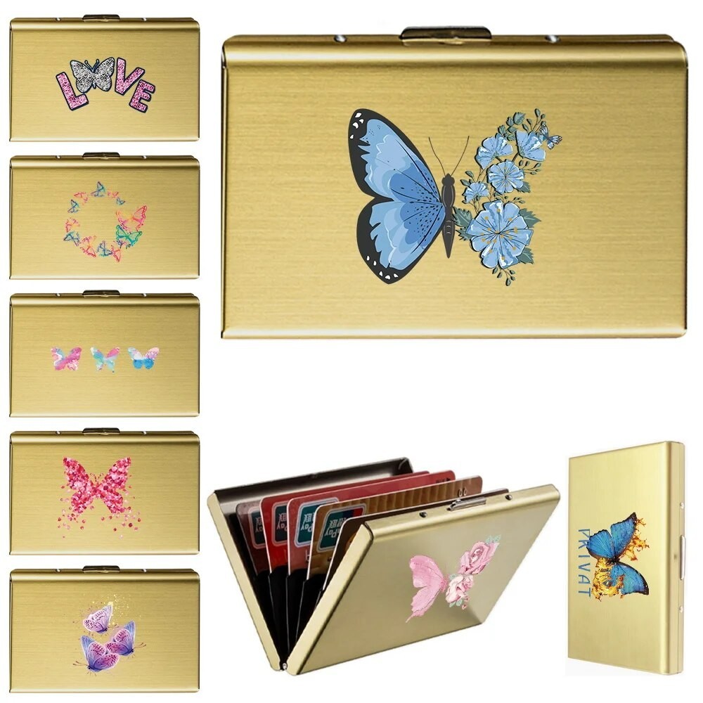 Minimalist Men's Metal Card Case Credit Cards Holder Metal Cards Bag Anti-theft Swipe Bank Credit Card Butterfly Series