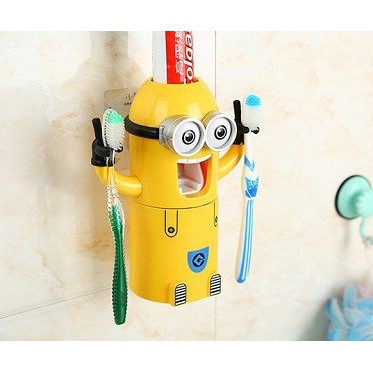 Minion Toothbrush Holder With Cup Toothbrush Holder Mouthwash Cup Automatic Toothpaste Squeezing Device Dispenser