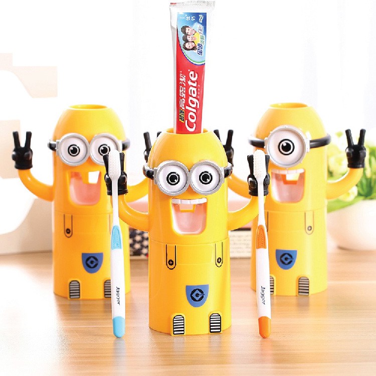 Minion Toothpaste Dispenser Toothbrush Holder Cute Squeezer / Tempat Letak Berus Gigi Kanak-Kanak