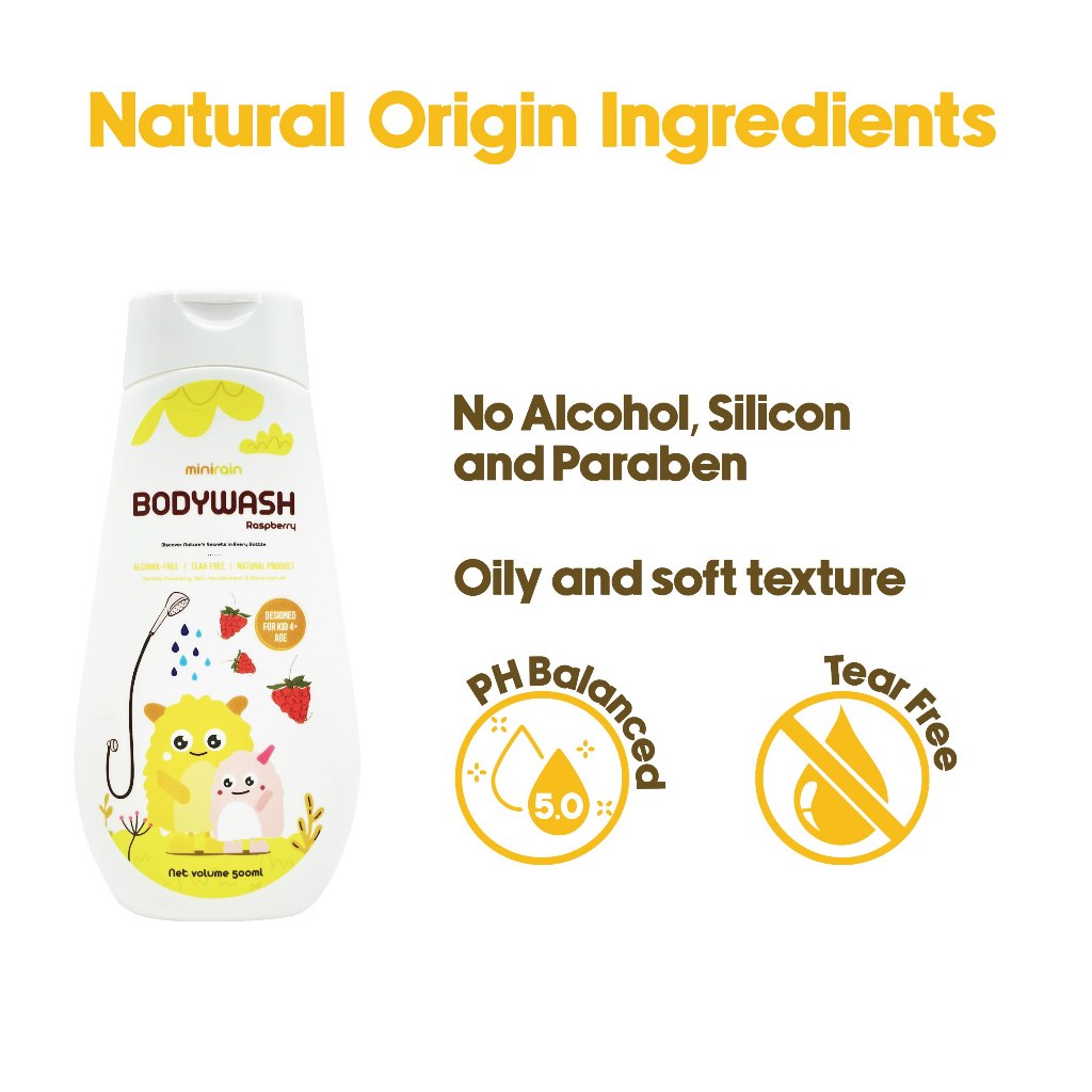 MINIRAIN Bodywash Raspberry Cooling 500ml | Sabun Mandi Wangi Kanak-Kanak Lembut & Segar