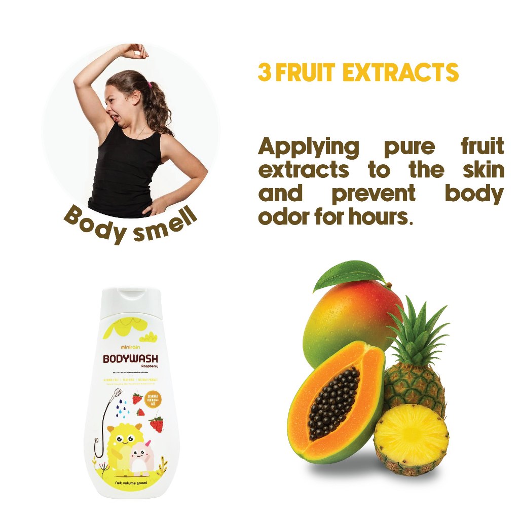 MINIRAIN - Raspberry Kids Body Wash | Long-lasting Fresh Scent (500ml) | Sabun Mandi Kanak Low PH5.5