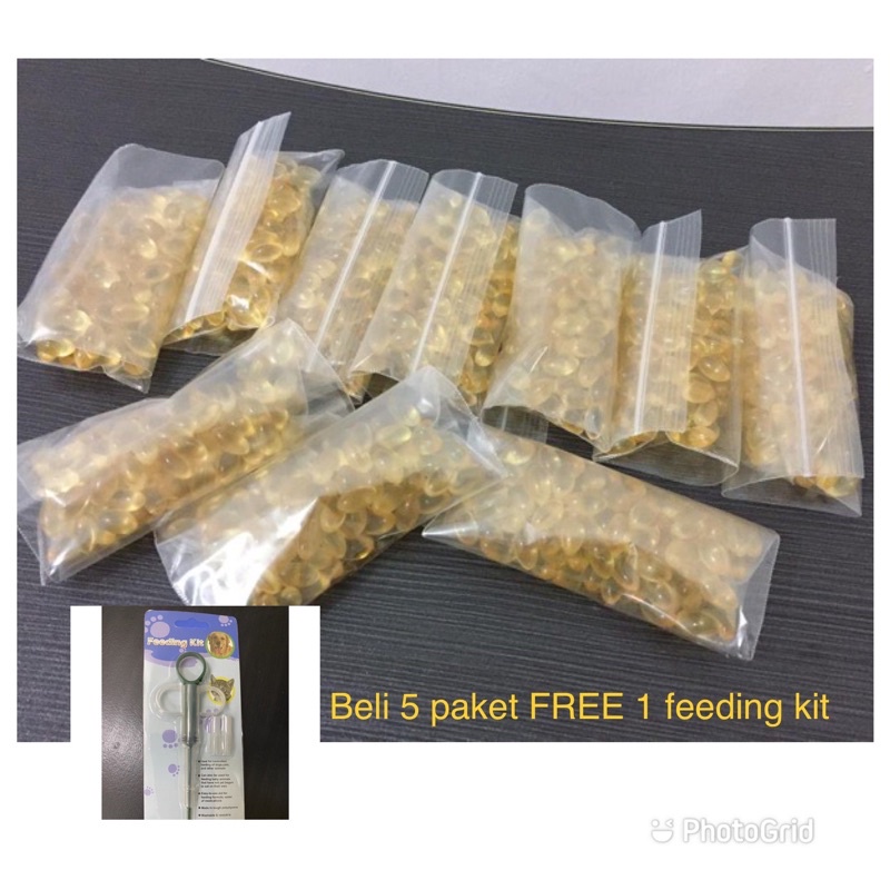 Minyak Ikan Fish liver oil 100’s Biji untuk Ayam / Burung / Kucing / Anjing (Repacked)