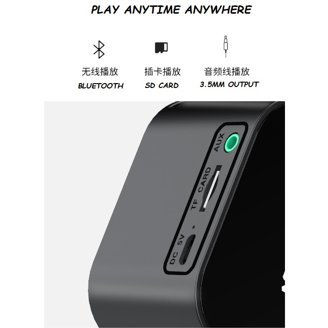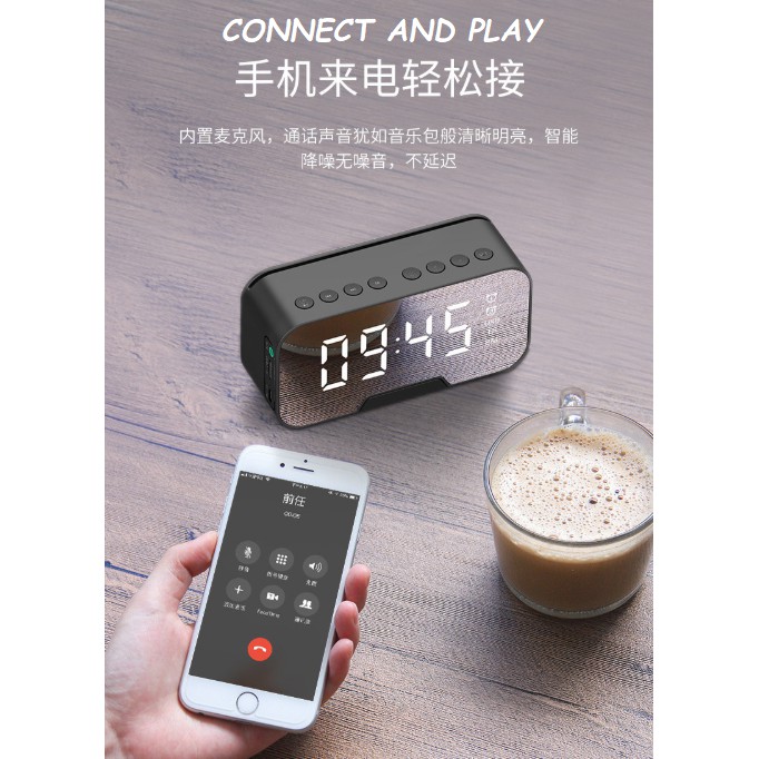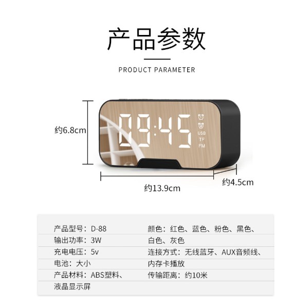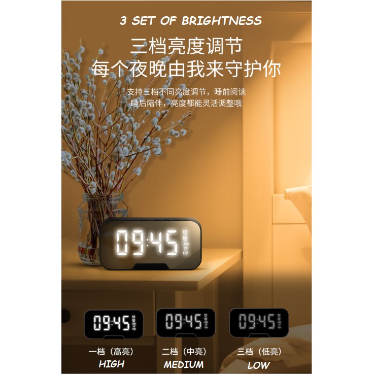 Mirror Bluetooth Snooze Alarm Clock Speaker Radio Column Subwoofer Music Sound Box LED Time Screen