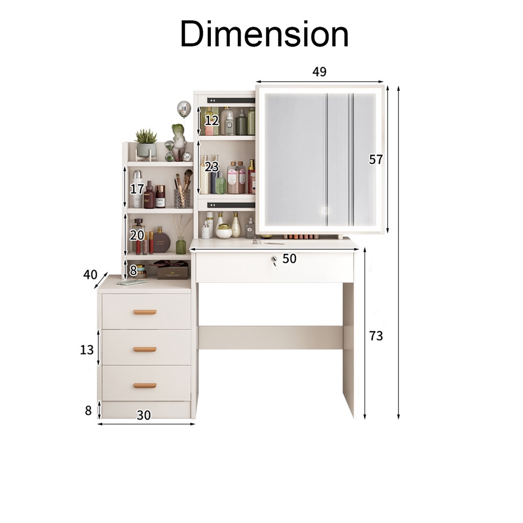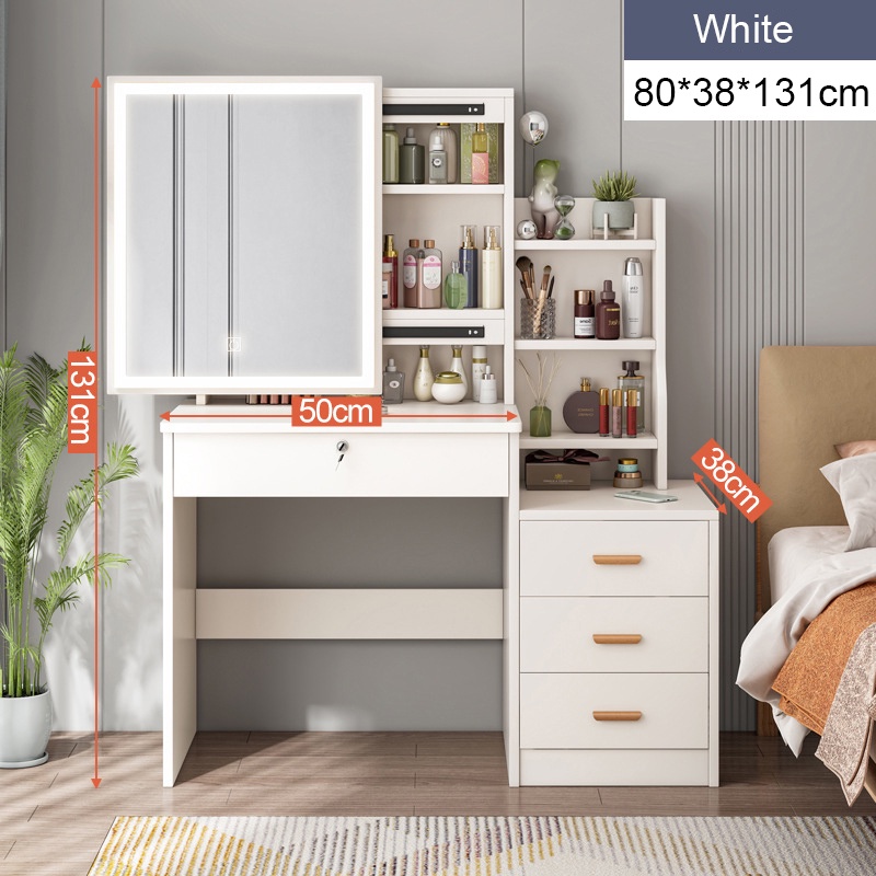 Mirror with LED Right Cabinet 80CM Dressing table bedroom ins dressing table storage cabinet JD-3985-LED-White