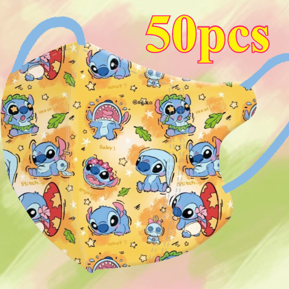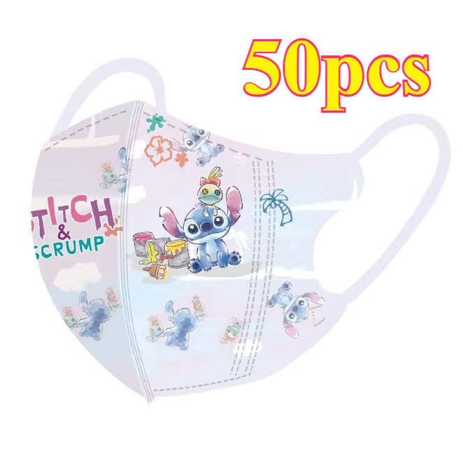 Mischievous Stitch 3-12-year-old children's protection mask Independent packaging with three layers of protection Protecting the safety of children 50pieces mixed children's mask