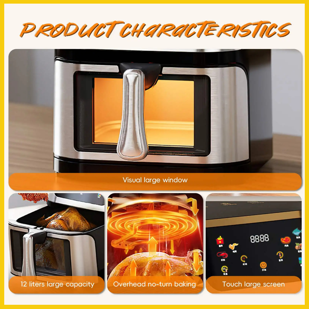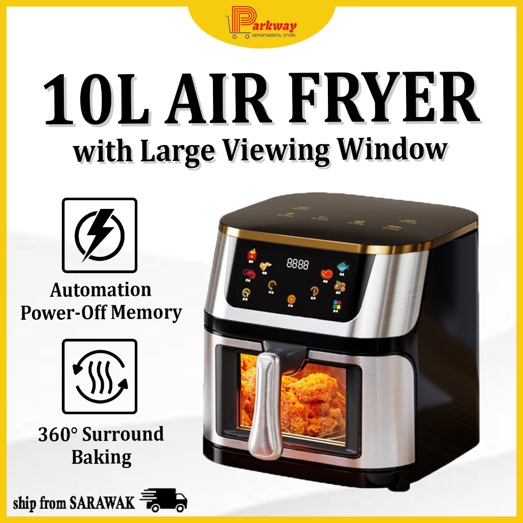 [EAST MSIA]10L AIR FRYER WITH VIEWING WINDOW 1400W 360° SURROUND BAKING PENGGORENG UDARA HOUSEHOLD FRIES MACHINE 空气炸锅