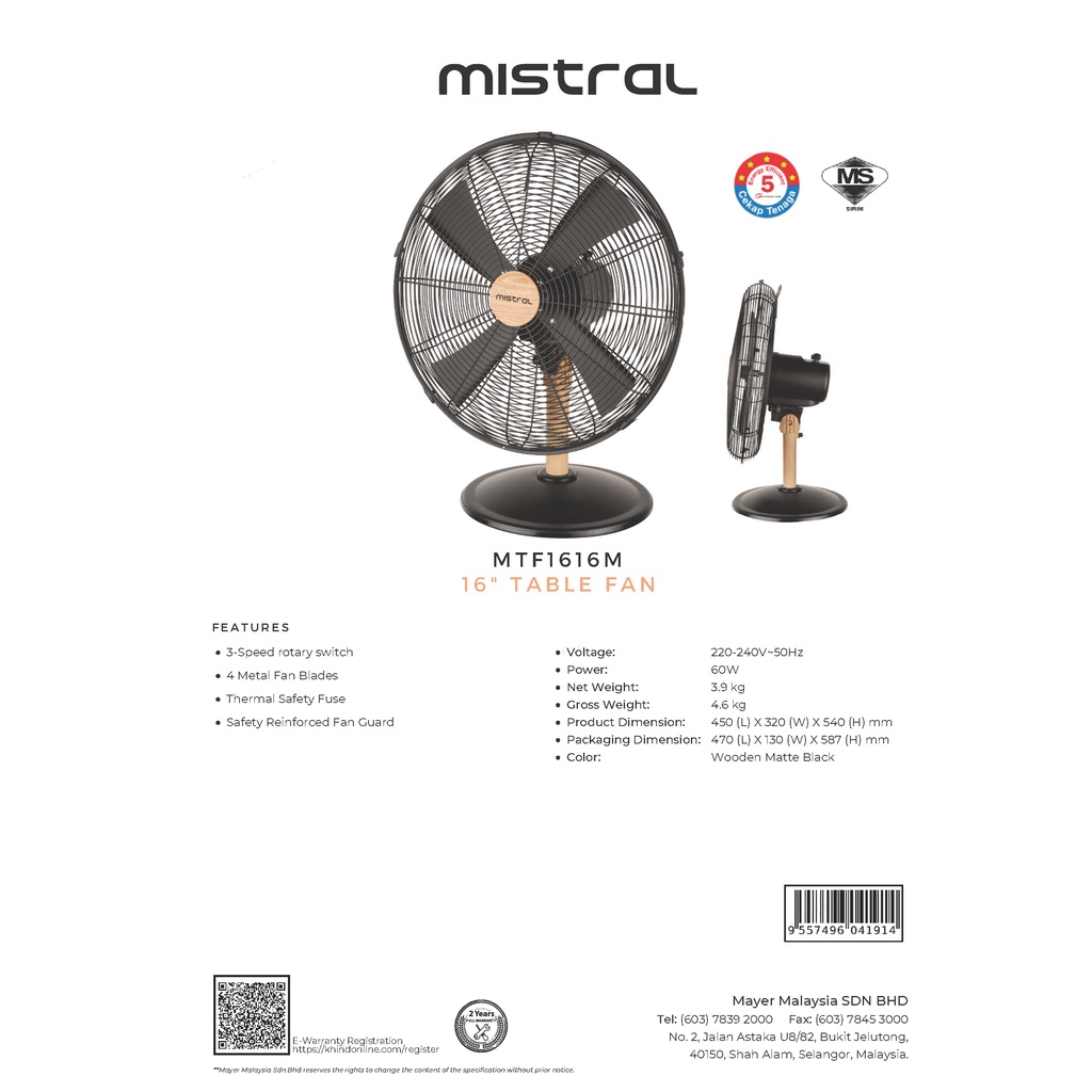 Mistral 16 Inch Table Fan MTF1616M Desk Fan Elegant Classic Retro design