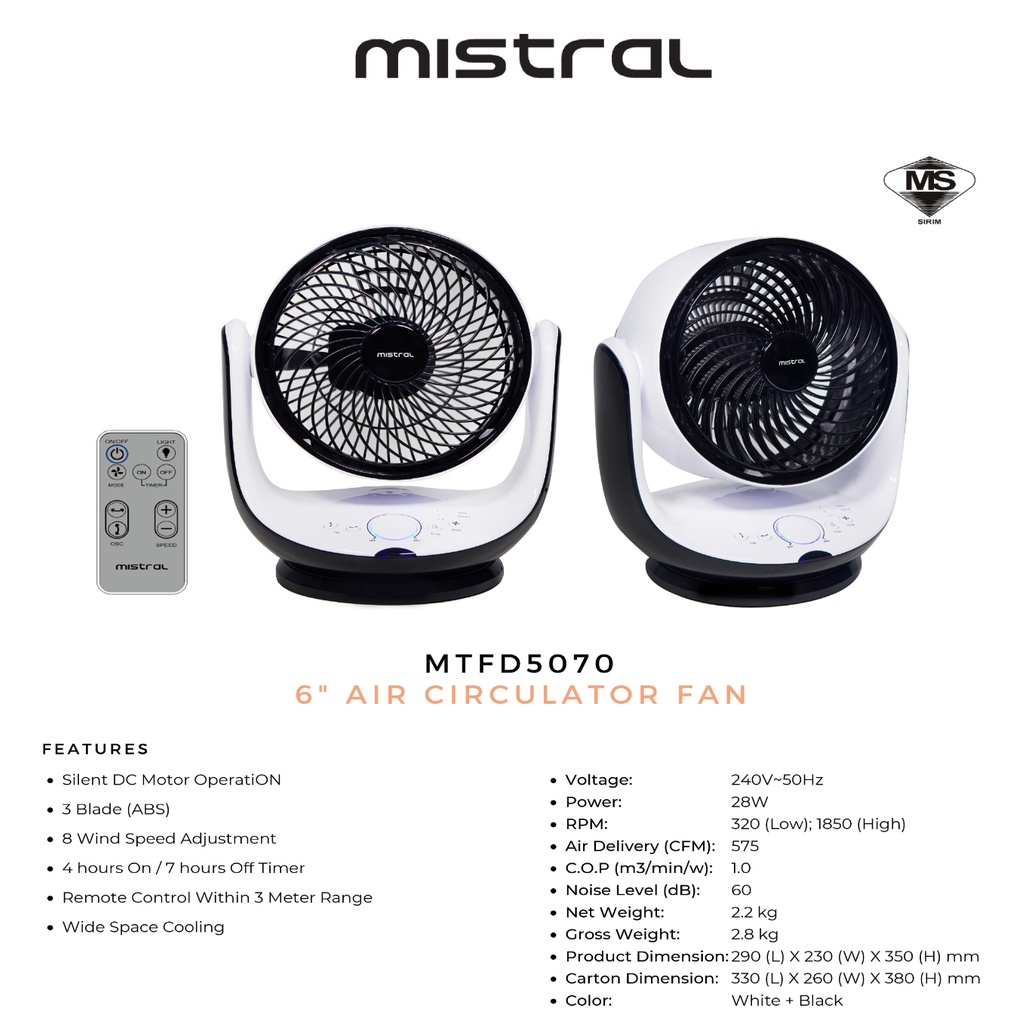 Mistral Air Circulator Fan - DC Motor MTFD5070