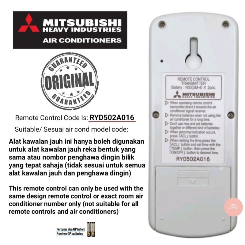 Mitsubishi Heavy Industries Air Conditioner Remote Control with AIR FLOW (Original or High Quality Replacement)