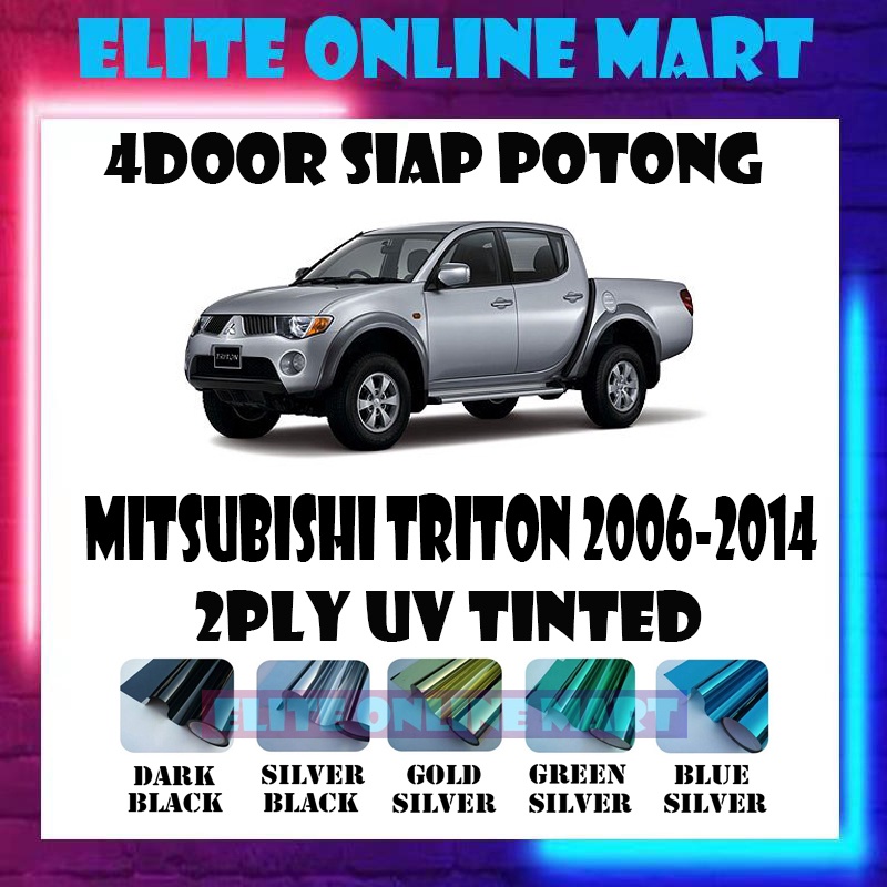 Mitsubishi Triton 2006-2014 4 Door Tinted UV 2Ply Siap Potong Tinted Kereta Dark Black/Silver Black/Gold/Green/Blue