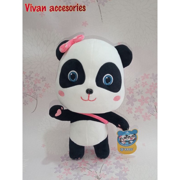 Cute panda doll miu Miu&Kiki baby bus-blue, 30 cm
