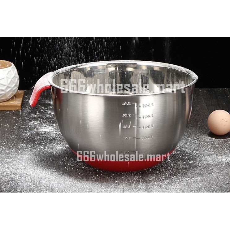 Mixing Bowl 304 Stainless Steel Non-Slip DIY Cake Bread Salad Mixer Kitchen Baking Cooking Tool with Scale Mark Range